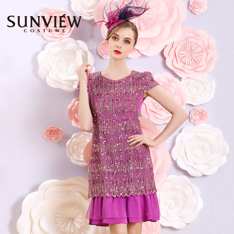 SUNVIEW/尚约品牌女装专柜亮片蕾丝荷叶边礼服裙连衣裙子水波纹