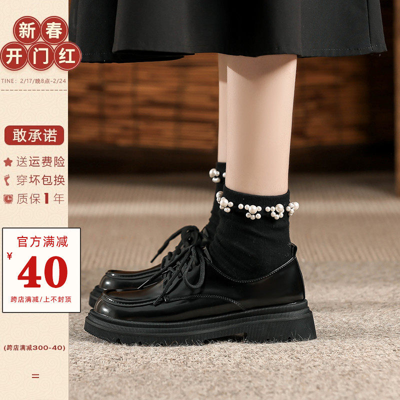 黑色英伦小皮鞋女春秋2024新款配裙子jk厚底乐福鞋单鞋大码41一43
