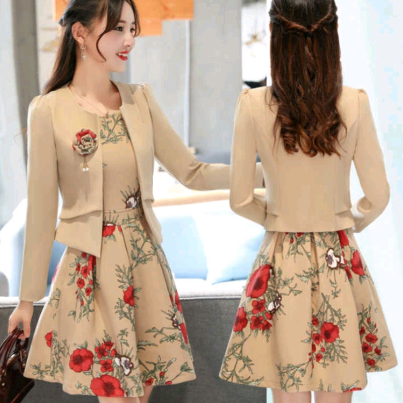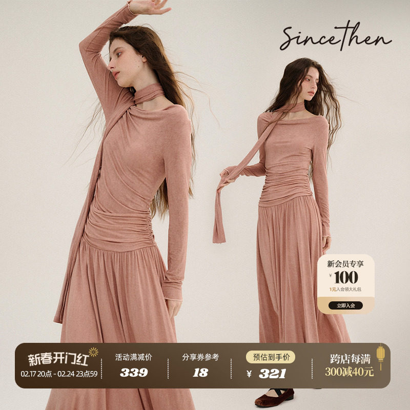 尘埃之家长袖连衣裙2023秋装女时尚ol印花系带收腰大气中长款裙子