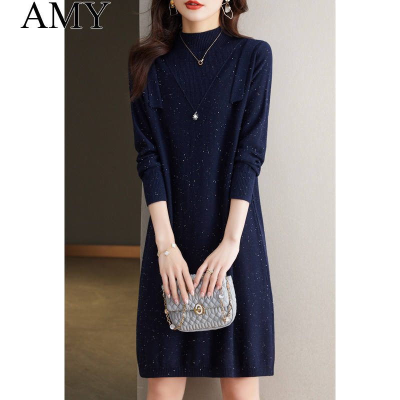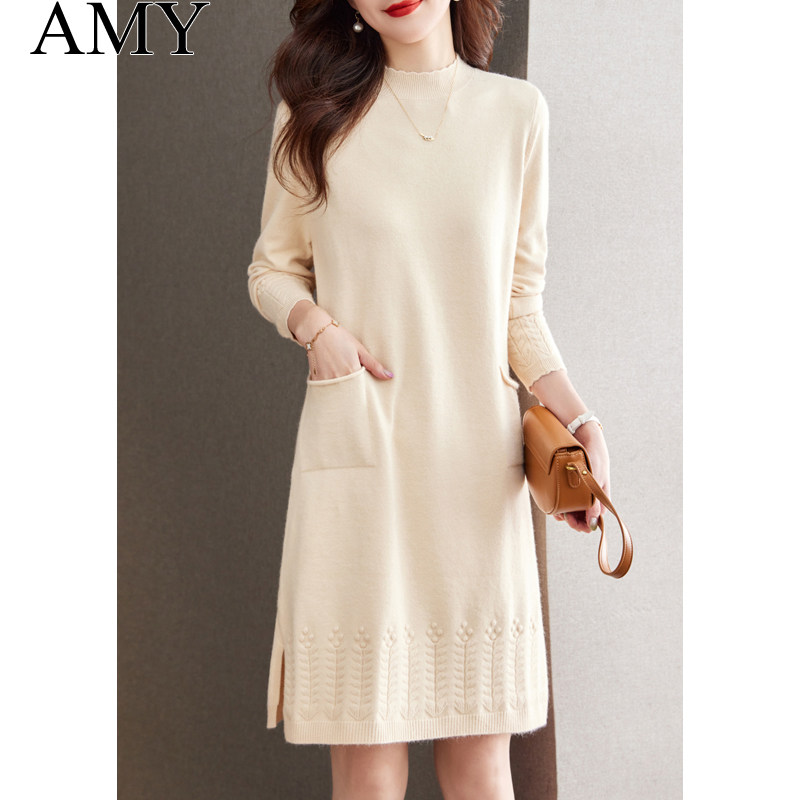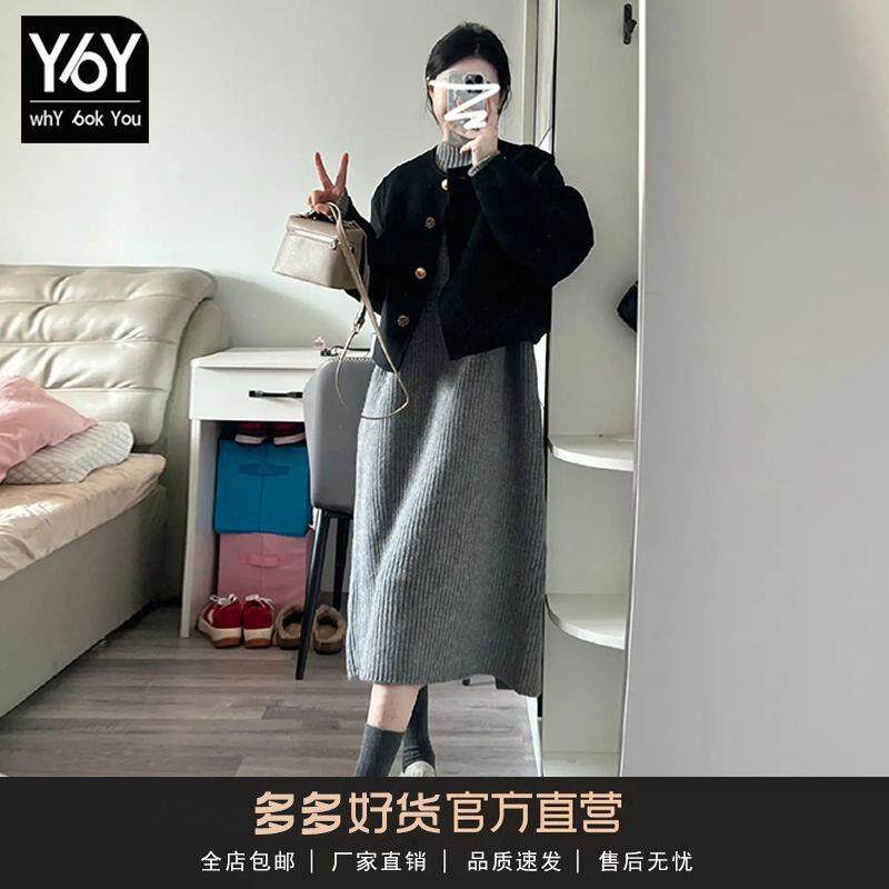 配大衣的内搭连衣裙中长款气质女打底毛衣裙过膝收腰洋气高领裙子