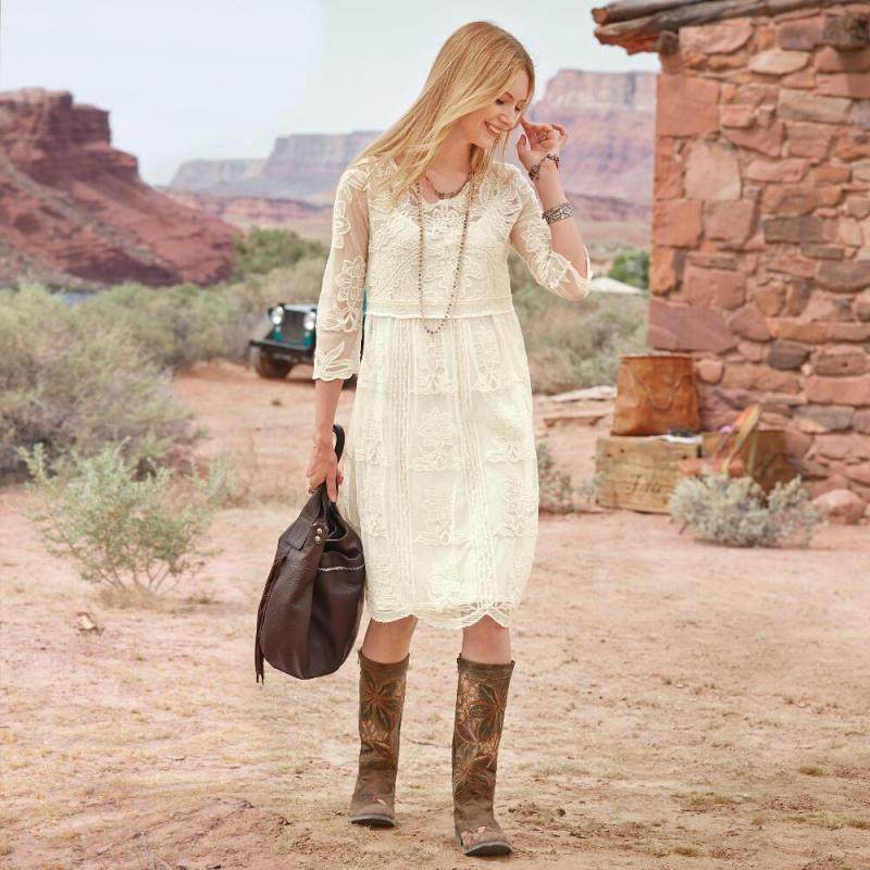 sundance 连衣裙性感蕾丝白色中长裙七分袖女裙子经典正品73686