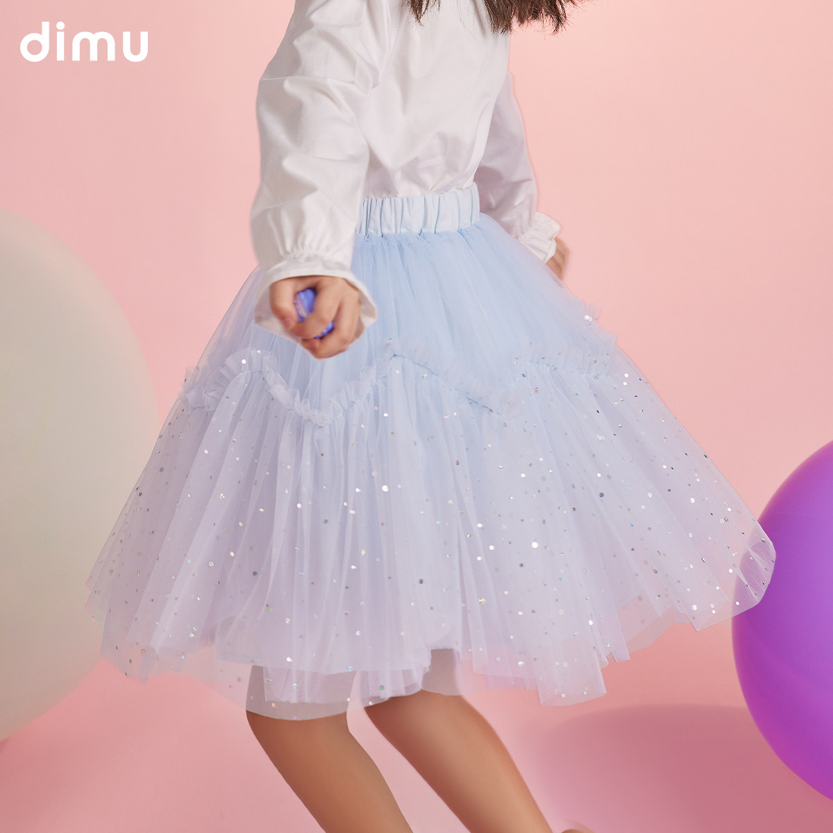 笛牧女童半裙2023秋装新款甜美网纱木耳边拼接亮片儿童蓬蓬裙子