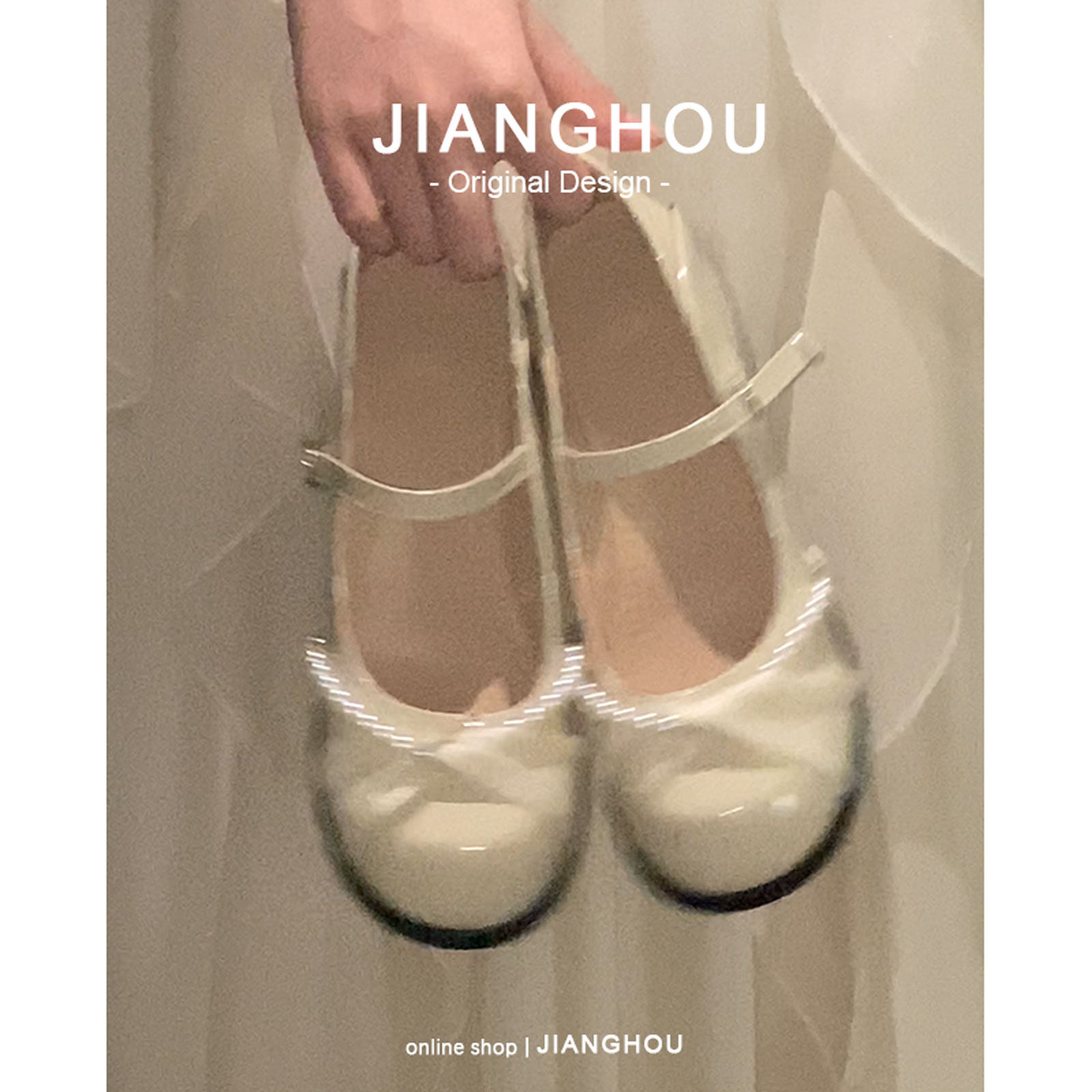 牛皮版~匠逅 圆头法式玛丽珍鞋软皮浅口粗跟珍珠单鞋配裙子仙女风