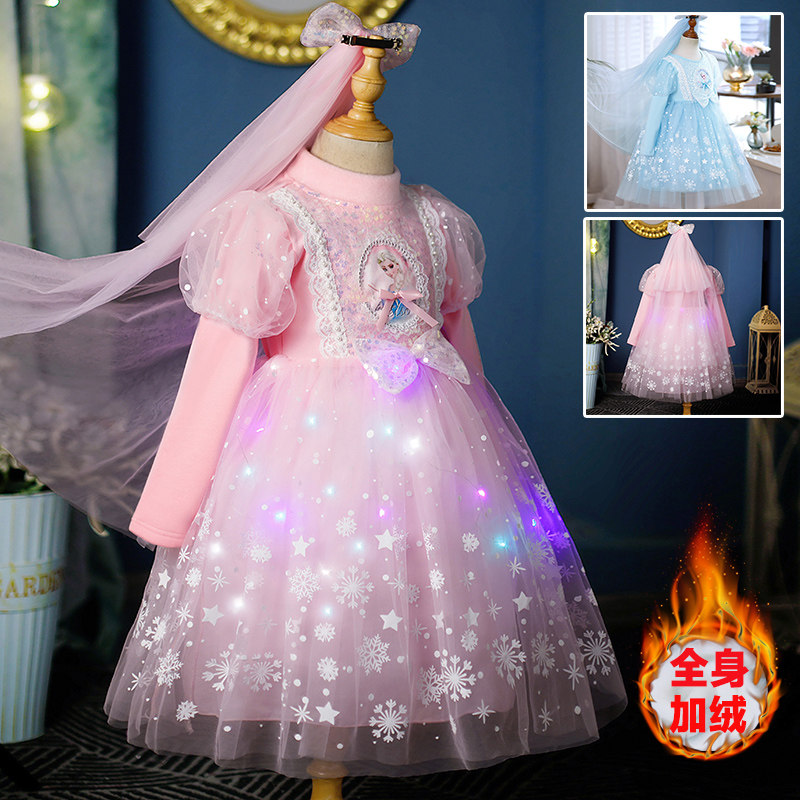 女童春季连衣裙2023新款儿童秋冬裙子春装加绒爱莎公主裙艾莎冬款