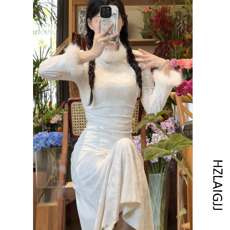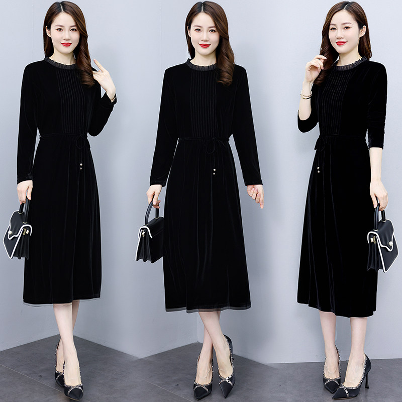 连衣裙女秋季2023新款女装韩版时尚修身显瘦加绒蕾丝打底裙子女冬