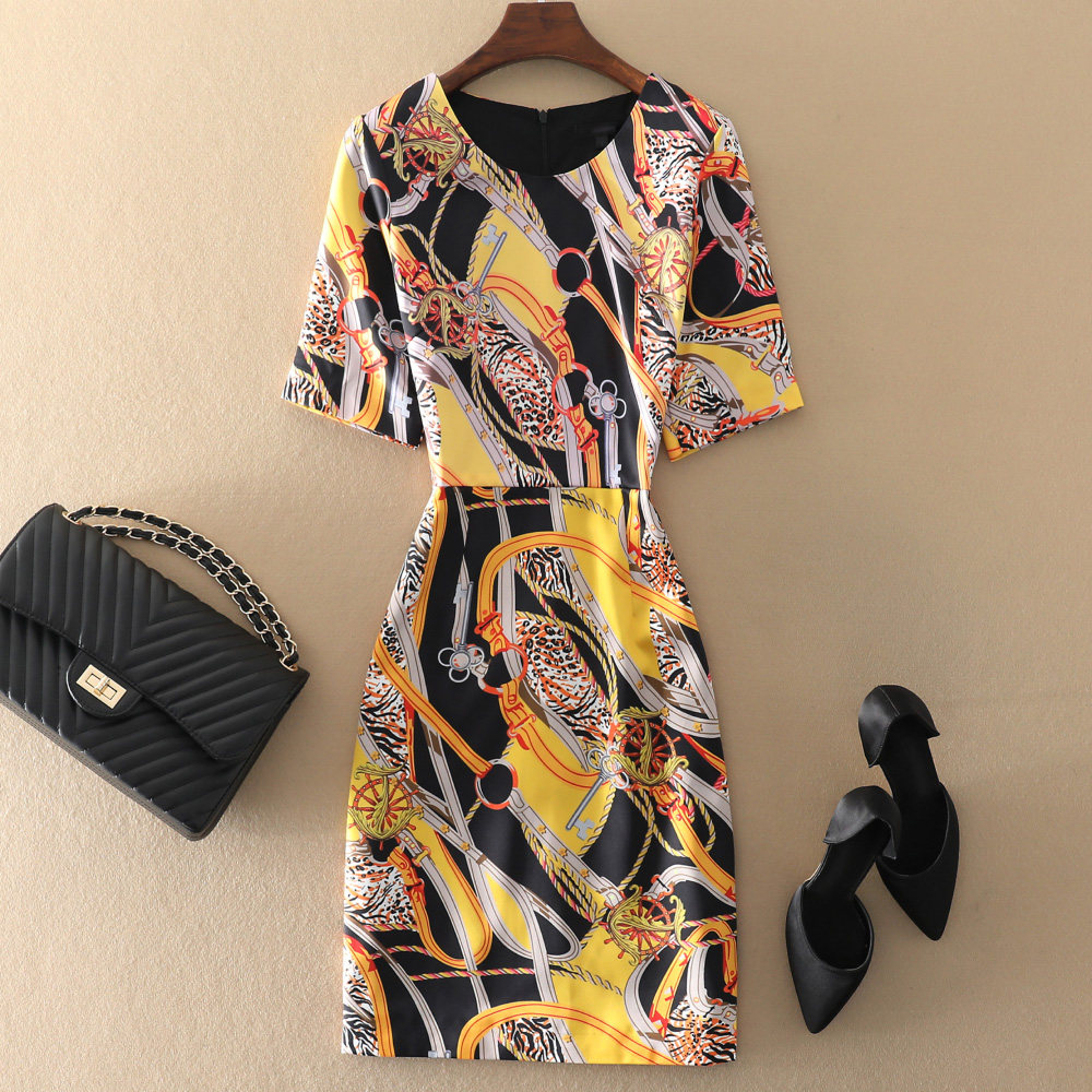 欧美高端大牌修身礼服裙子时尚印花大码显瘦气质连衣裙包臀夏新款