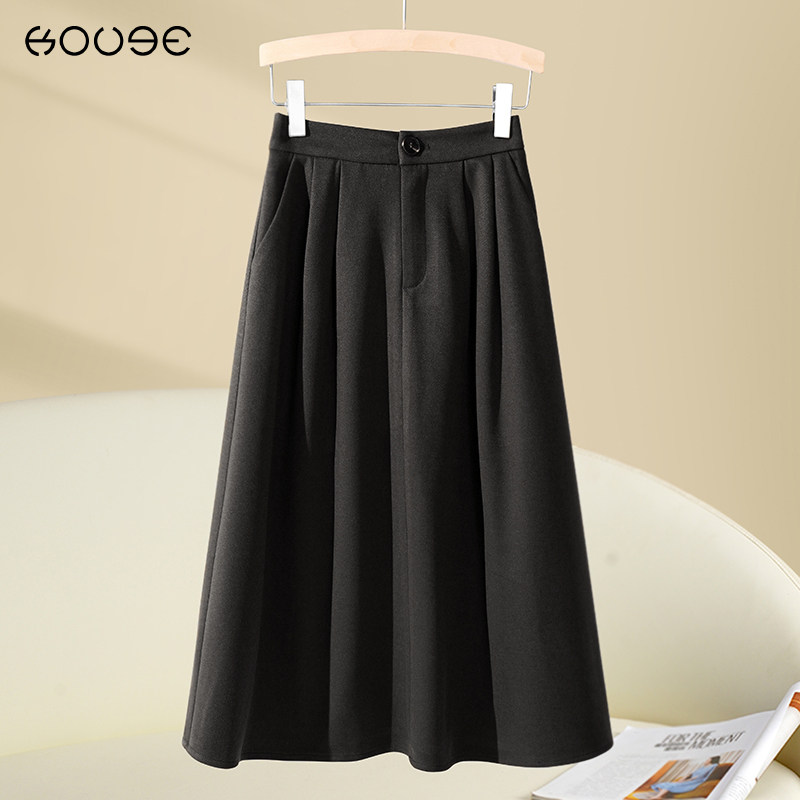 黑色百褶裙半身裙中长款裙子女秋冬季2023年新款呢子加厚高腰伞裙