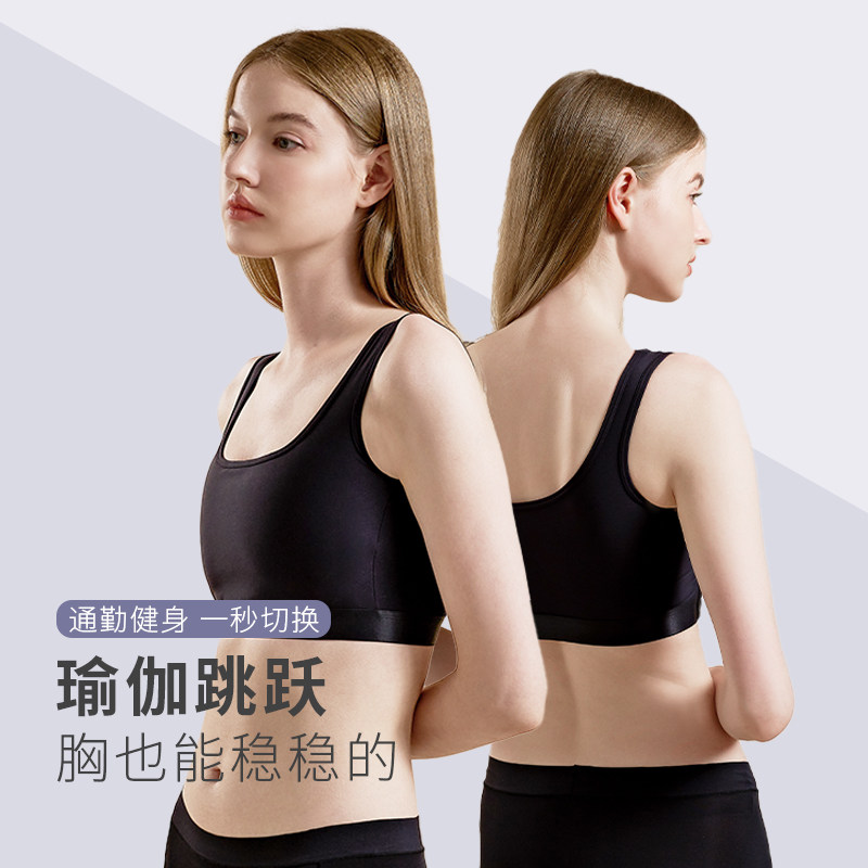 美背内衣女带胸垫一体背心式少女裹胸抹胸运动学生无钢圈吊带文胸