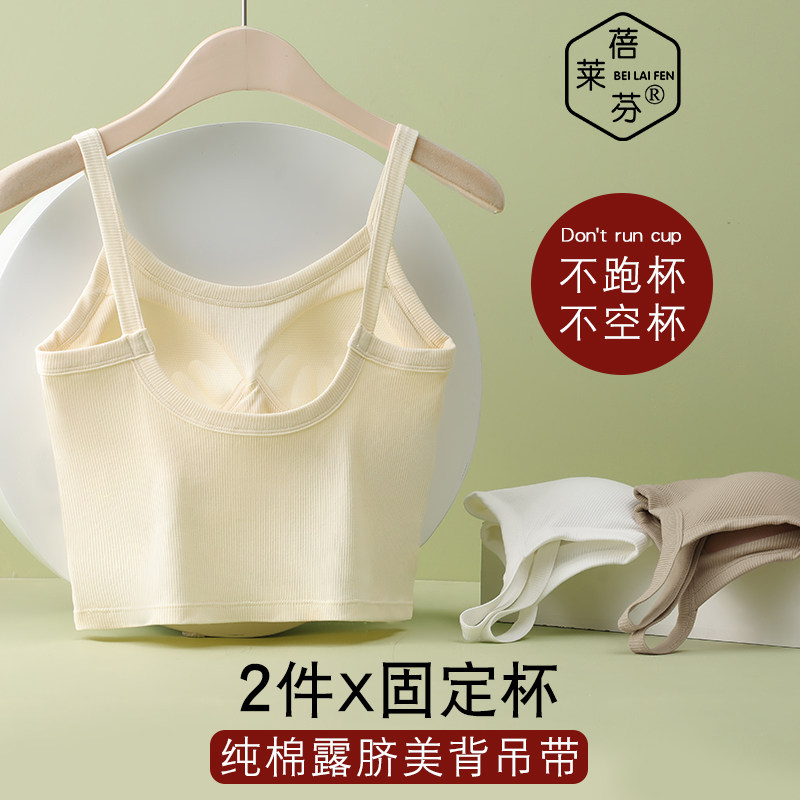 带胸垫U型美背小吊带棉内衣学生少女一体聚拢裹胸运动抹胸薄大码