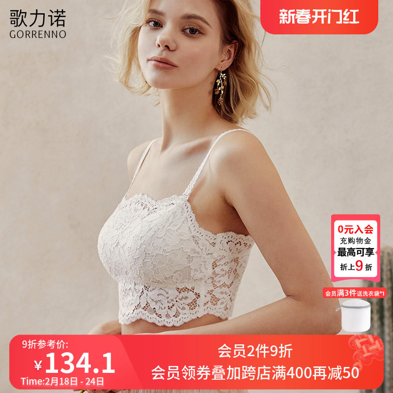 兰卓丽内衣女抹胸式可拆肩带无钢圈无肩带性感蕾丝文胸防走光裹胸