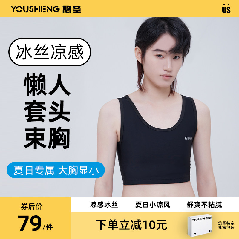 UNII束胸内衣大胸显小les平无痕裹胸塑胸帅t薄款透气学生运动背心