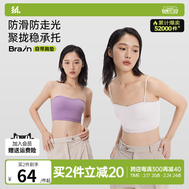 美背吊带背心带胸垫一体内衣抹胸防走光聚拢上托裹胸防震少女文胸