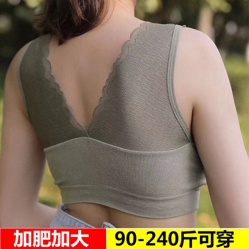 大码美背文胸200斤胖mm薄款裹胸聚拢全罩杯防走光无钢圈蕾丝内衣