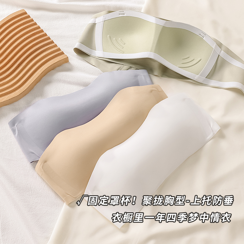 冰丝无肩带内衣女防滑抹胸裹胸无钢圈美背聚拢无痕一字肩文胸薄款