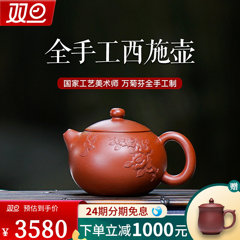 宜兴紫砂壶名家纯手工原矿朱泥大红袍西施壶堆花万菊芬紫砂壶套装
