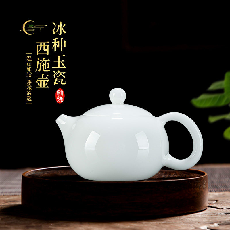 钰铨龙门 德化冰种羊脂玉白瓷上釉光面陶瓷西施壶泡茶壶一壶两杯