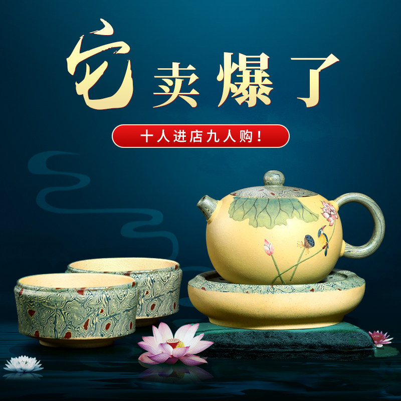 宜兴紫砂壶纯手工泥绘荷塘月色本山段泥泡茶壶家用茶具套装西施壶