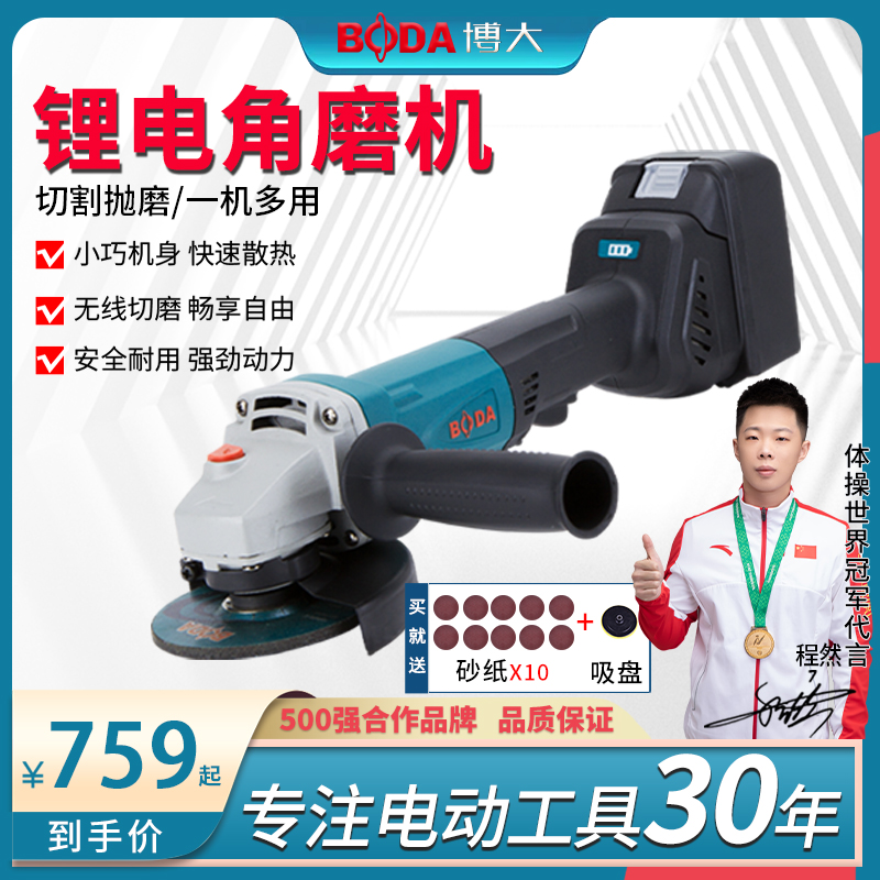 博大无刷锂电角磨机多功能抛光切割机无线打磨机充电式角向磨光机