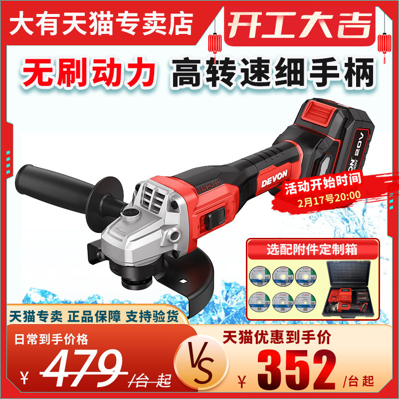 大有无刷充电角磨机2906角向磨光机金属石材木材打磨抛光机切割机