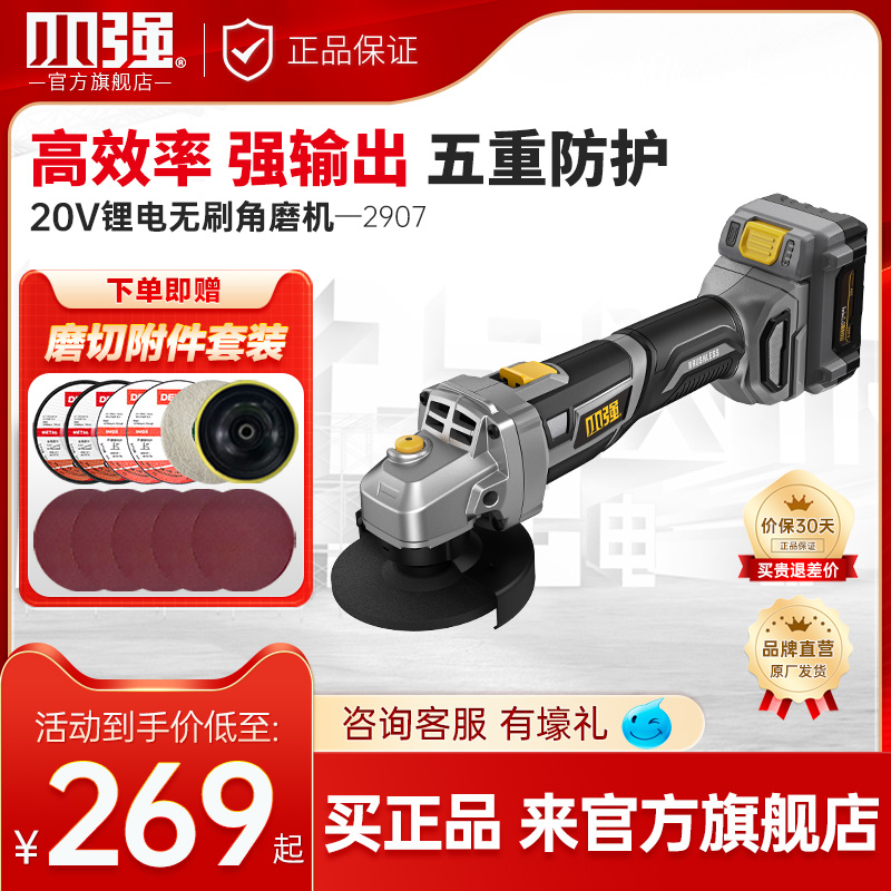 小强无刷充电角磨机锂电手磨机无线手砂轮切割抛光角向磨光机2907