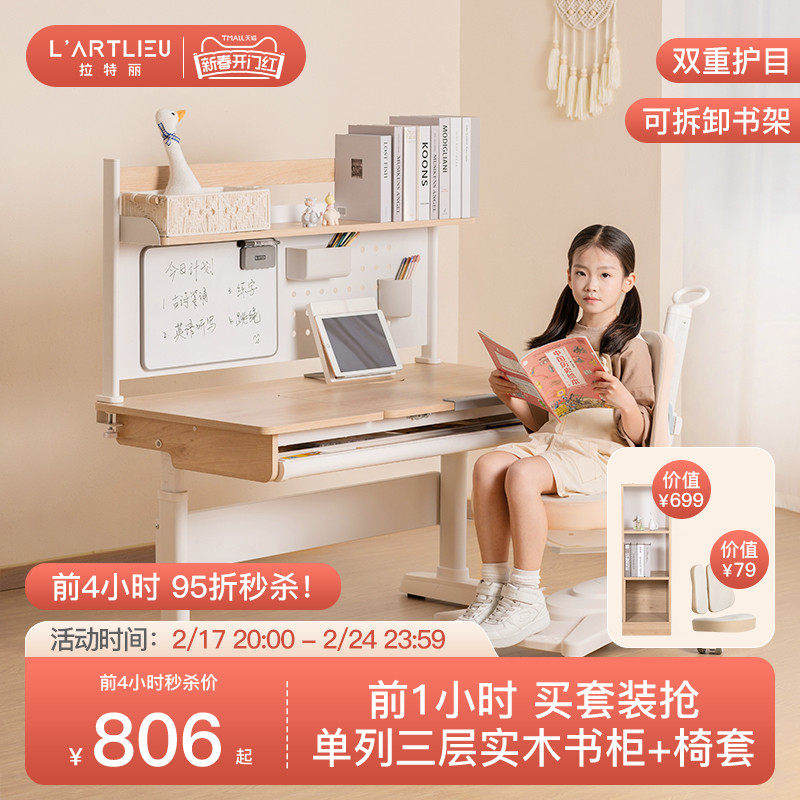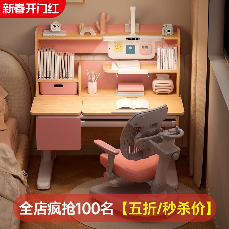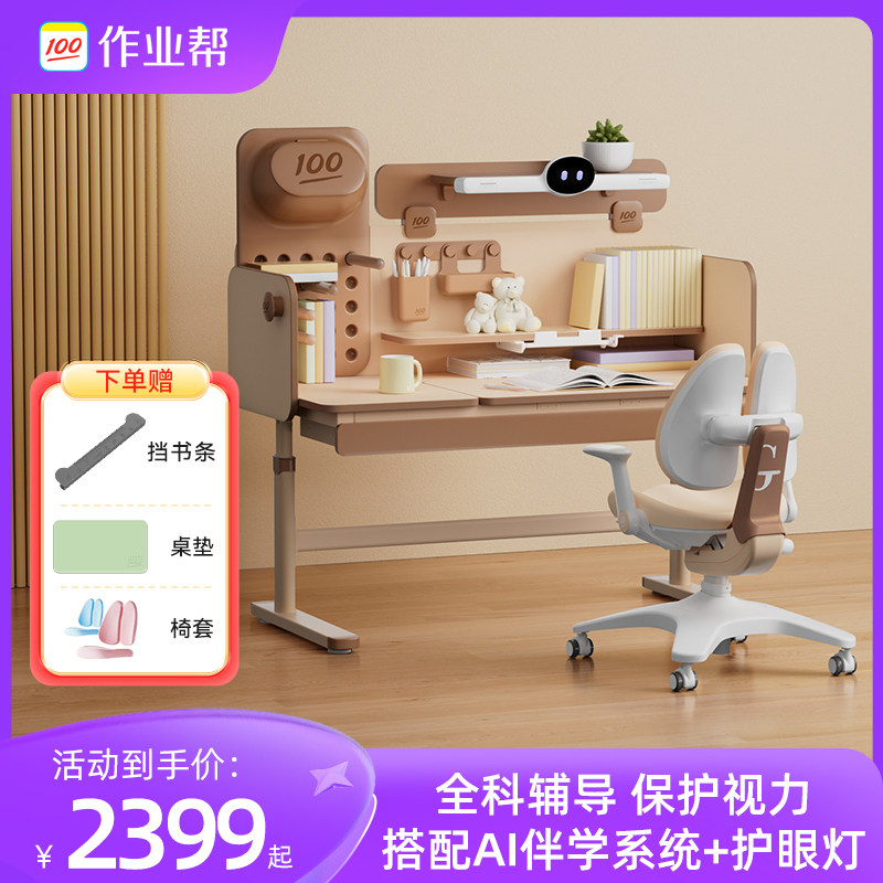 作业帮儿童书桌学习桌写字桌小学生家用课桌椅升降桌椅子实木套装
