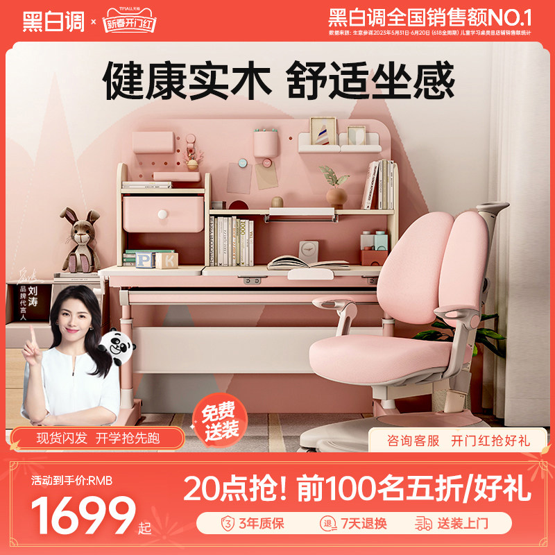 黑白调C2儿童学习桌小学生书桌家用写字桌可升降课桌实木桌椅套装