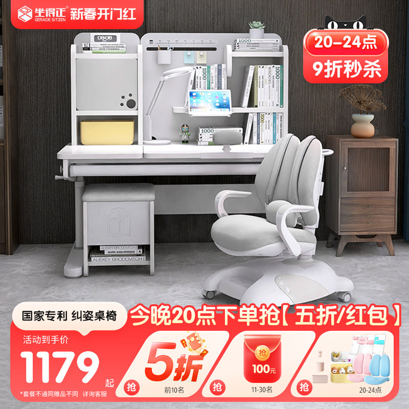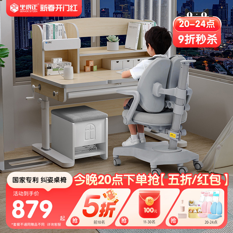 坐得正儿童书桌学习桌家用写字桌桌椅课桌可升降实木学生桌子定制