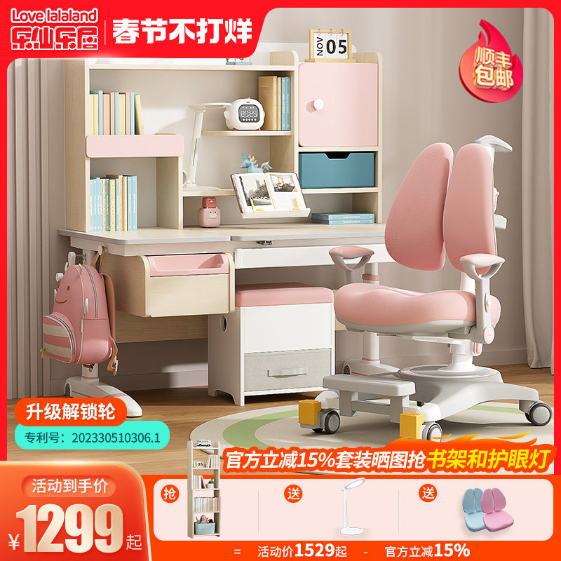 巧思洛儿童学习桌家用书桌小学生写字课桌椅青少年可升降实木套装