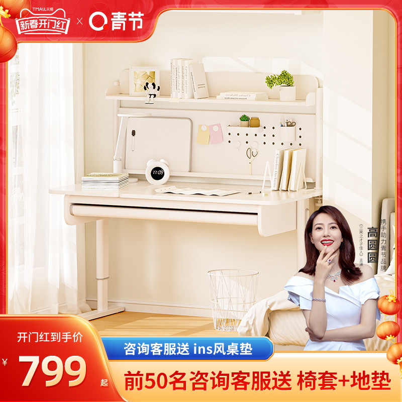 青节儿童学习桌学生书桌家用写字桌实木可升降桌椅套装作业桌课桌