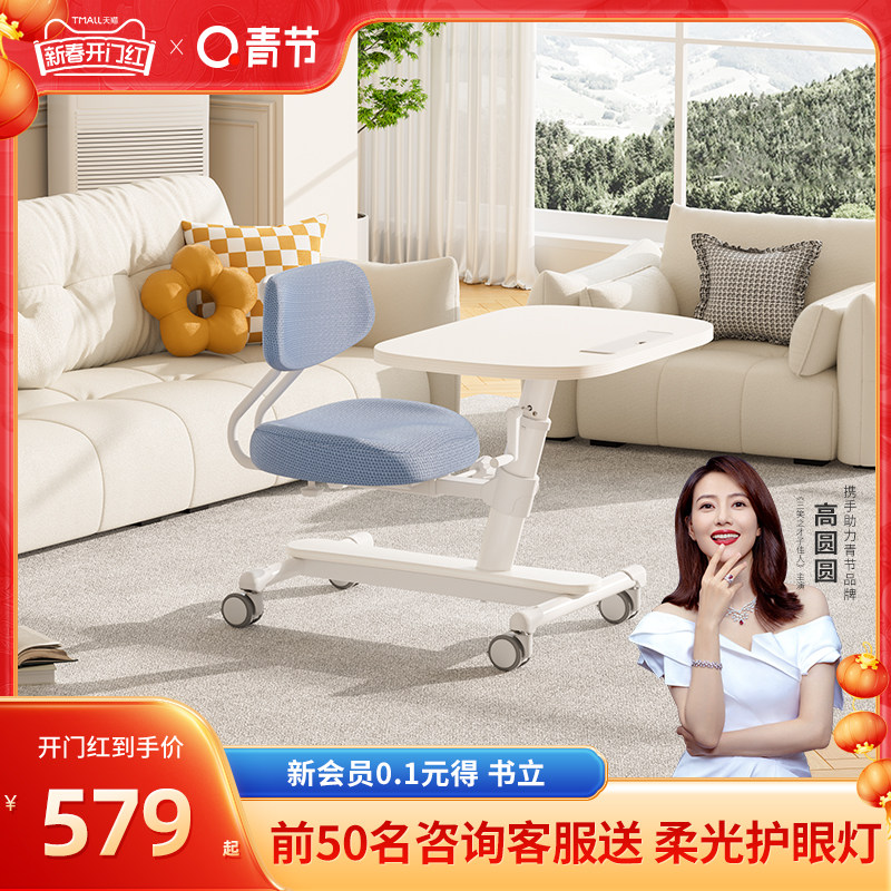 青节儿童学习桌椅一体小学生写字桌升降课桌家用移动书桌椅作业桌