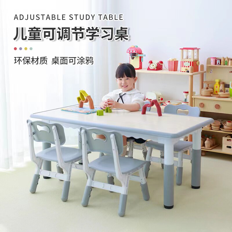 幼儿园桌子十人八人加长塑料长方形桌儿童升降写字玩具课桌椅套装