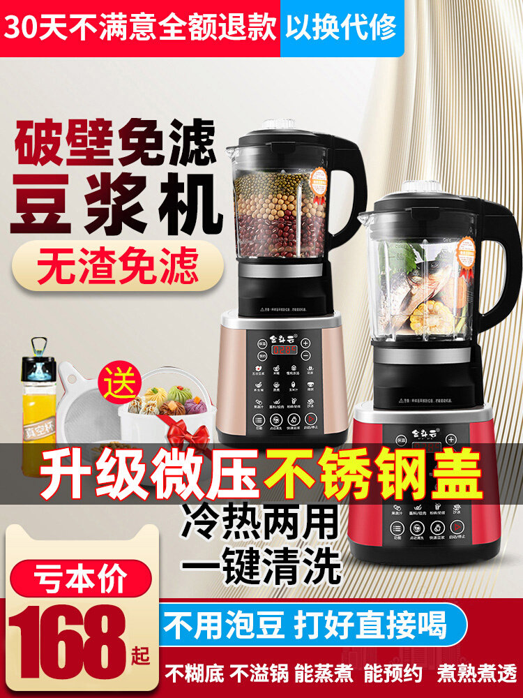 多功能豆浆机加热免煮破壁料理机冷热双用可预约破壁机2-3人