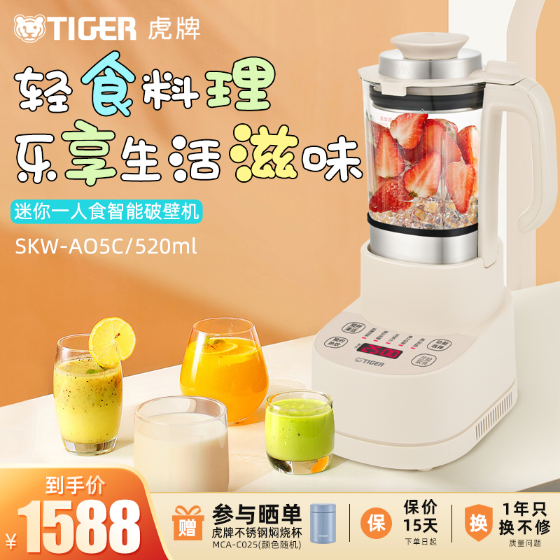 TIGER虎牌 SKW-A05C迷你小型多功能破壁机家用新款智能料理豆浆机
