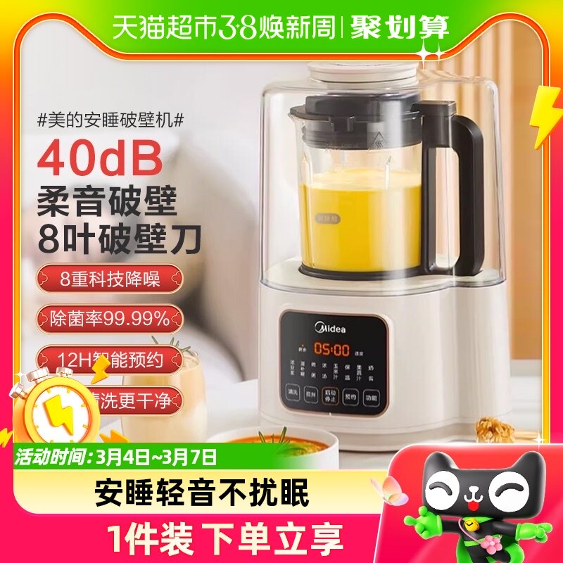 美的破壁机安睡低音细腻搅打家用全自动加热小型豆浆机榨汁料理机