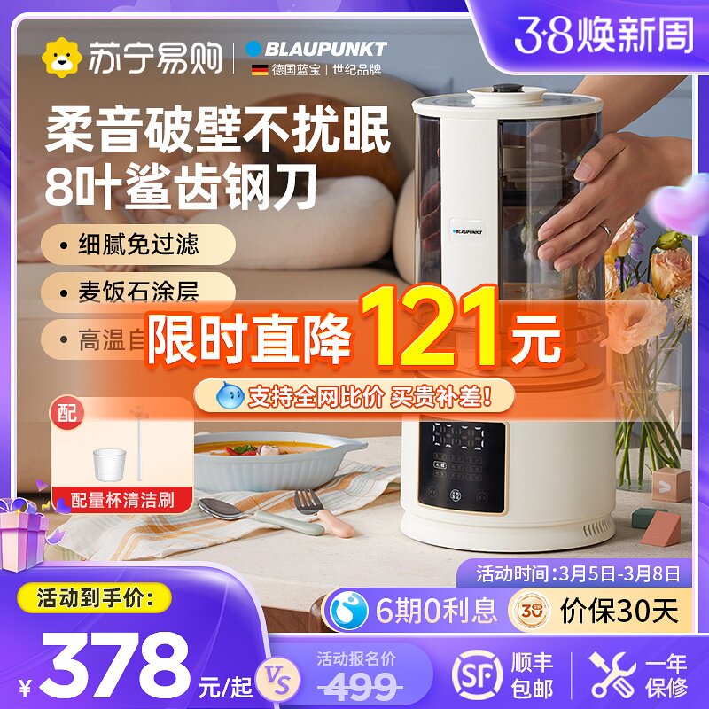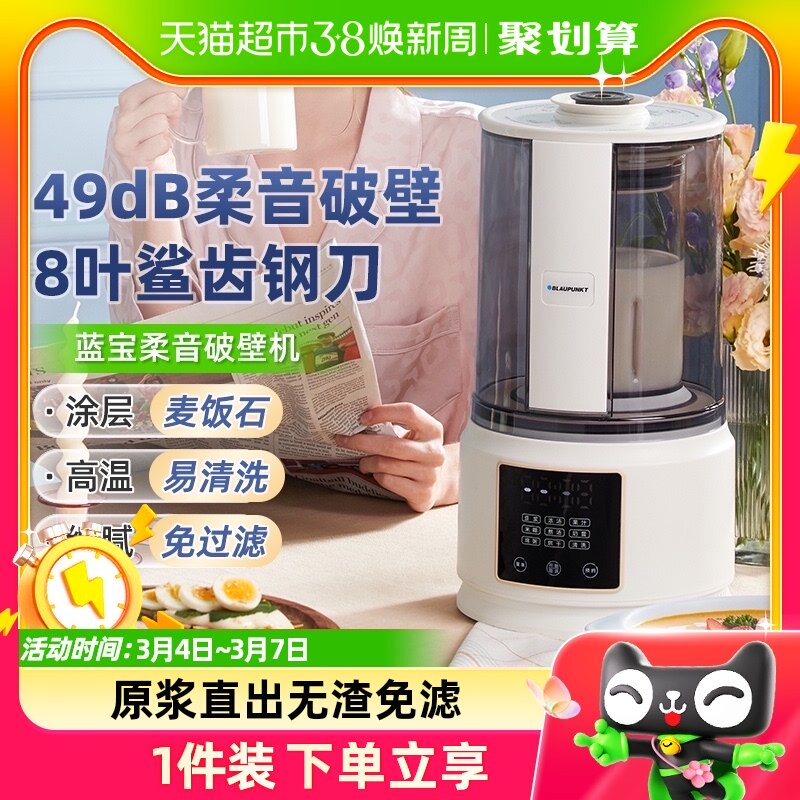 德国蓝宝柔音破壁机家用加热全自动小型豆浆机低噪音多功能料理机