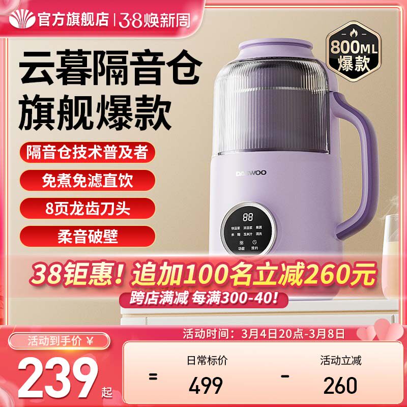 大宇破壁机家用加热全自动小型豆浆机低噪音五谷免滤多功能料理机