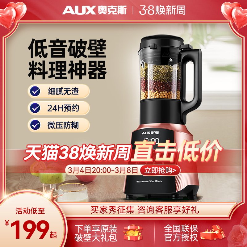 奥克斯破壁机新款家用小型豆浆正品旗舰店官方柔音多功能榨汁料理