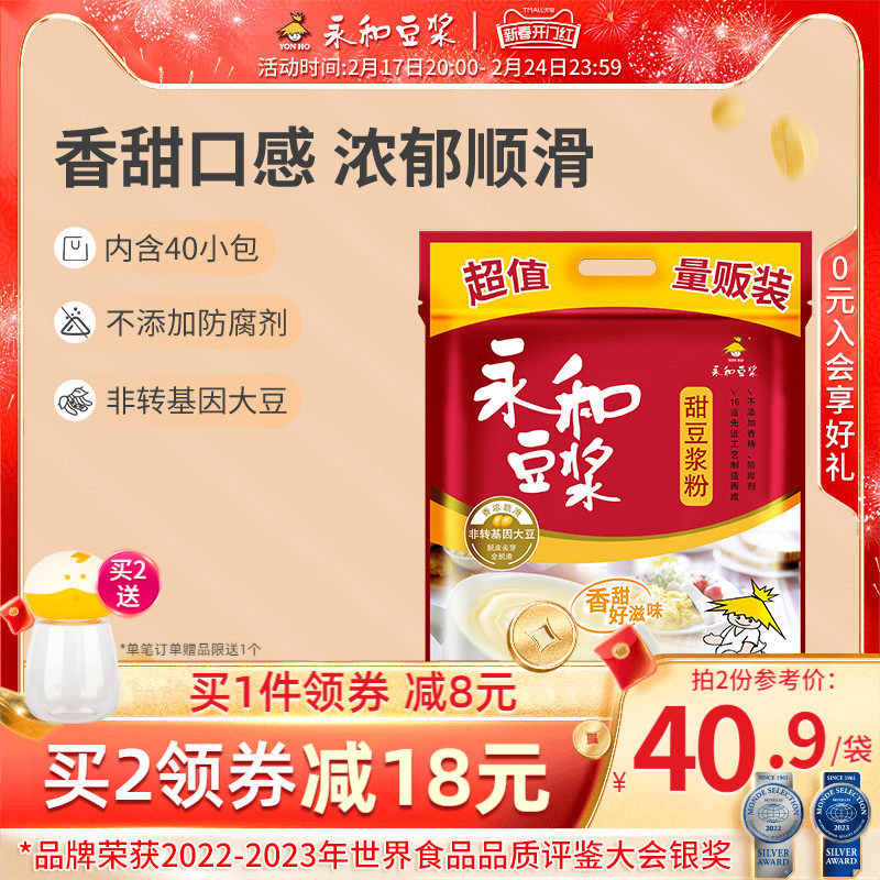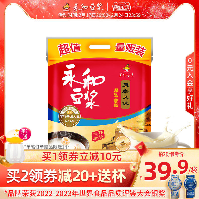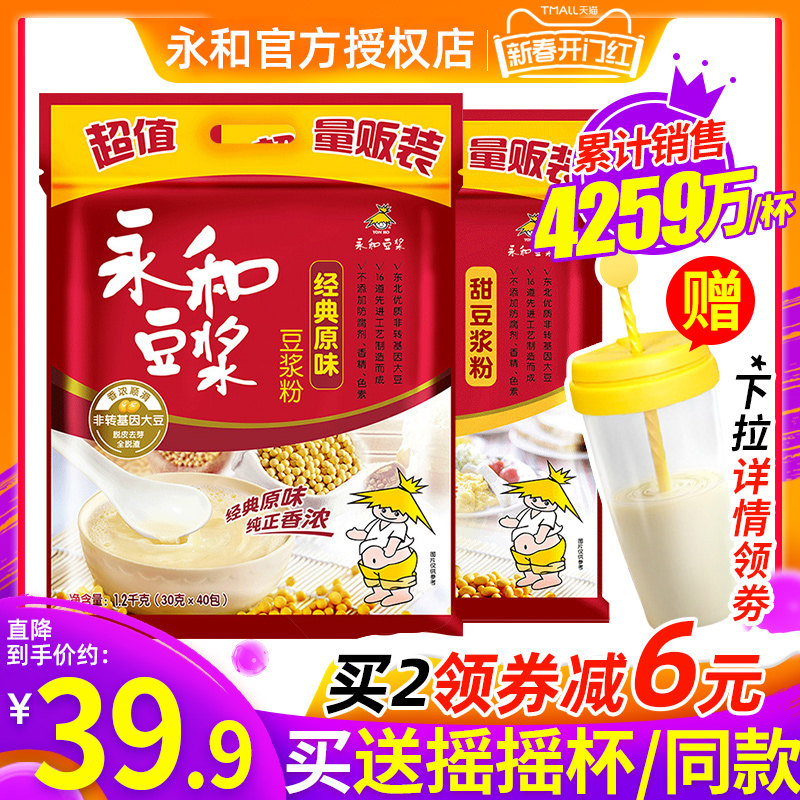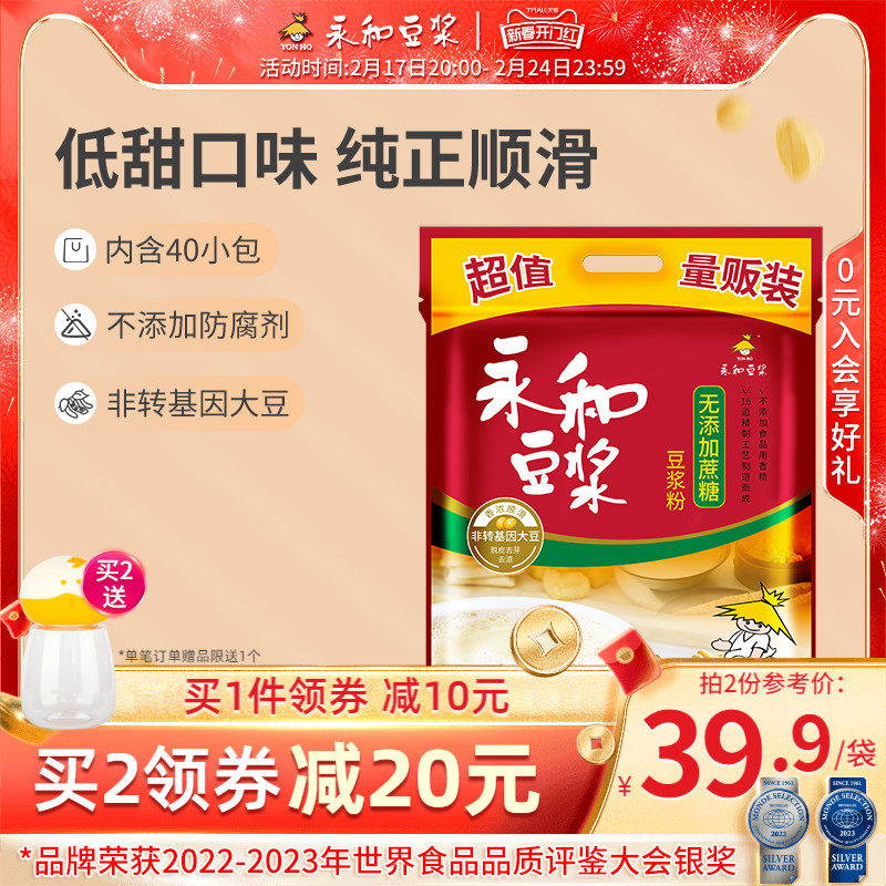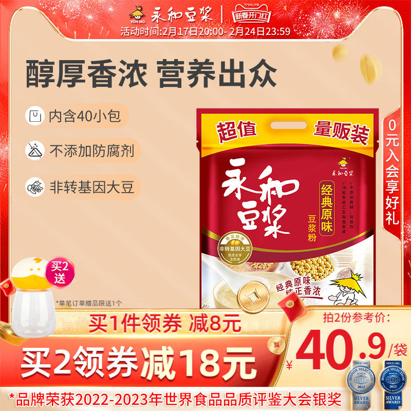 永和豆浆经典原味豆浆粉1200g营养早餐袋装速溶冲饮豆浆粉40小包