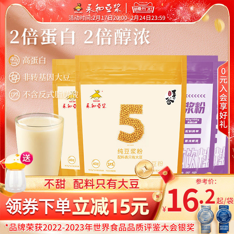 永和豆浆纯豆浆粉216g不甜脱渣无加糖高蛋白原味早餐代餐粉