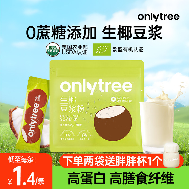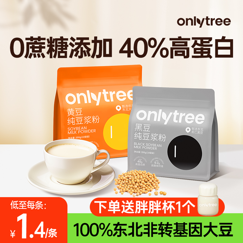 onlytree生椰豆浆粉黄豆黑豆高蛋白早餐专用无蔗糖添加代餐豆浆粉