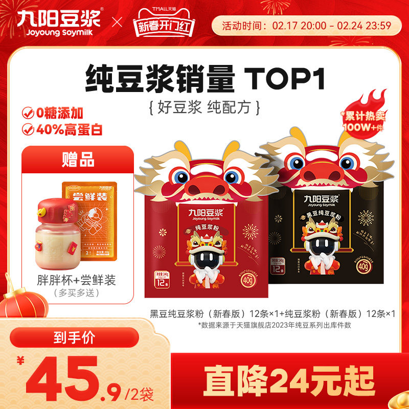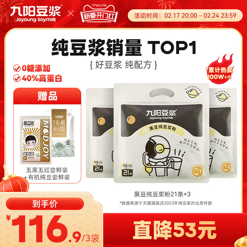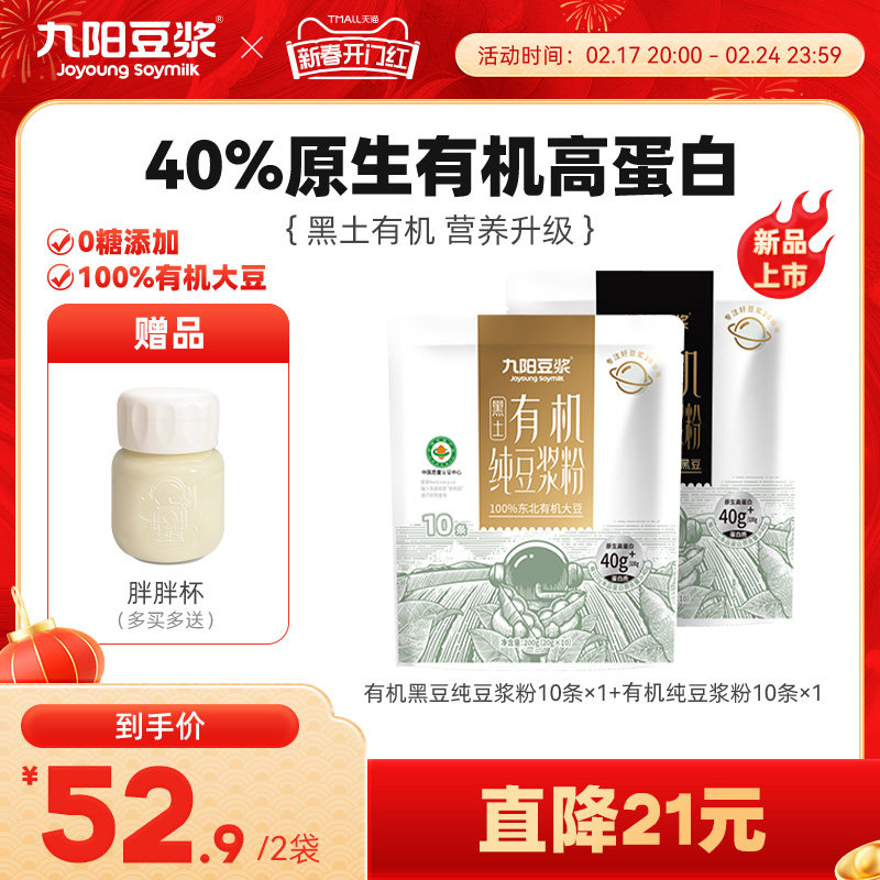 九阳豆浆官方官网旗舰店豆浆粉旗舰纯豆原味早餐营养添加无蔗糖0