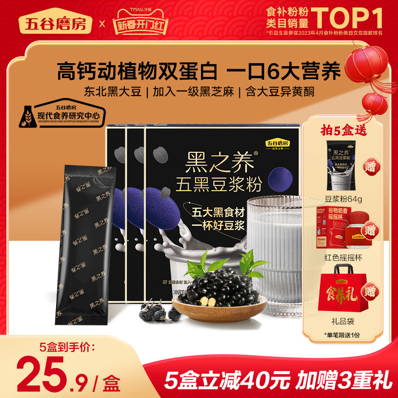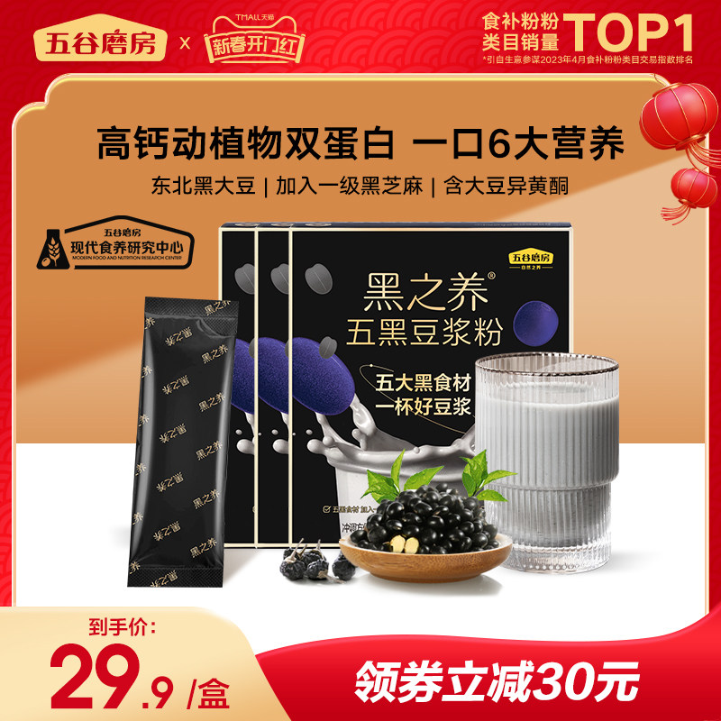 【0添加】五谷磨房黑之养黑豆豆浆粉孕妇早餐五黑豆浆粉高蛋白