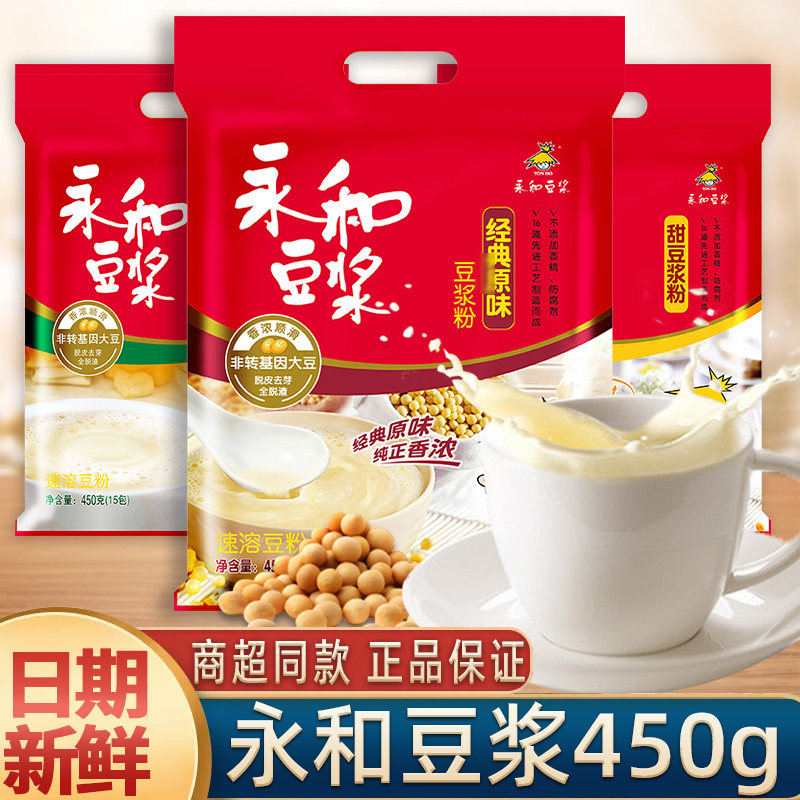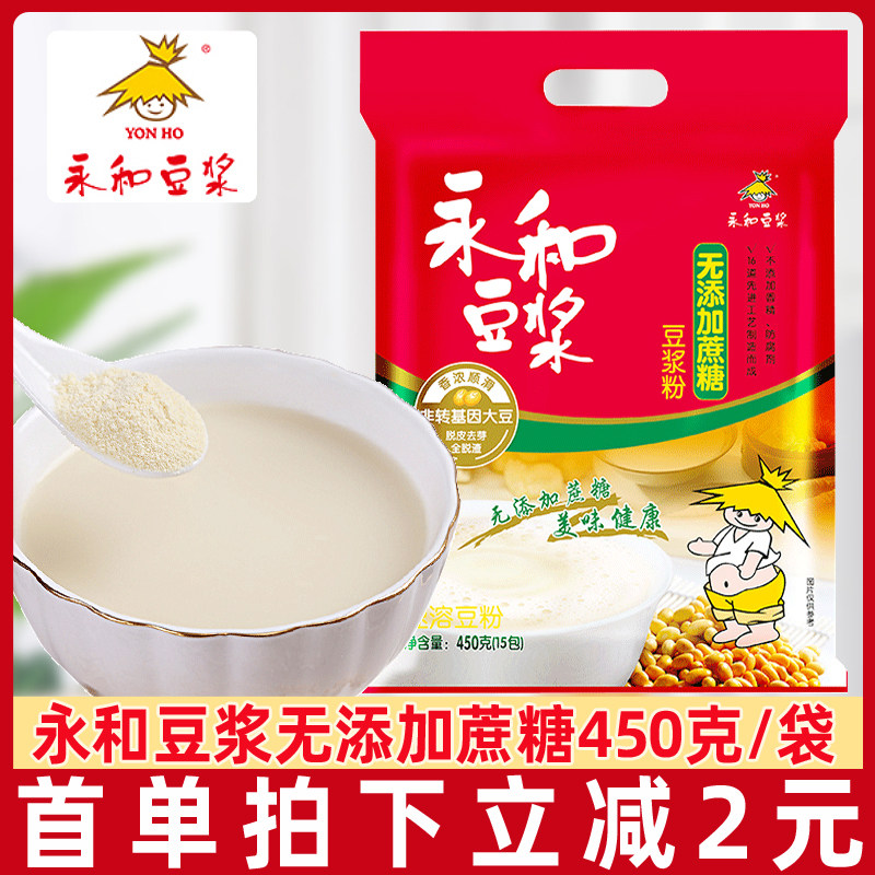 永和豆浆无蔗糖豆浆粉450g无添加蔗糖营养早餐袋装速溶冲饮豆粉