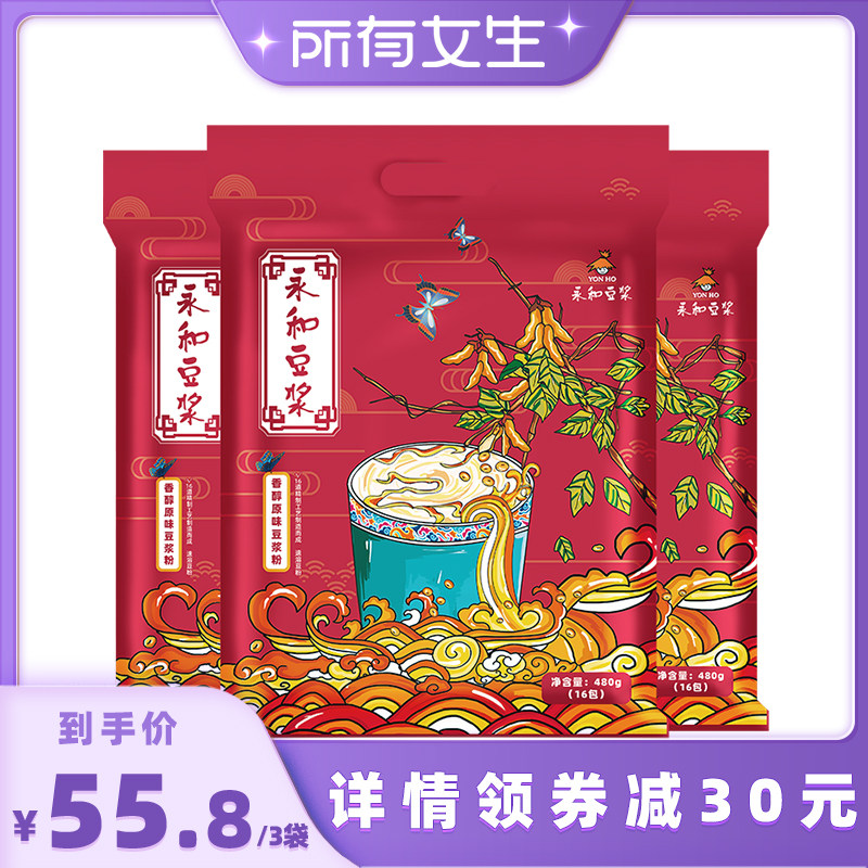 永和豆浆纯豆浆粉216g*3不甜无加糖高蛋白早餐