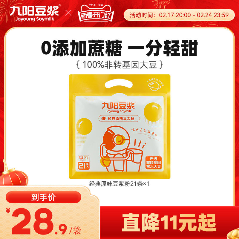九阳豆浆经典原味豆浆粉21条低甜豆浆粉学生营养早餐植物奶