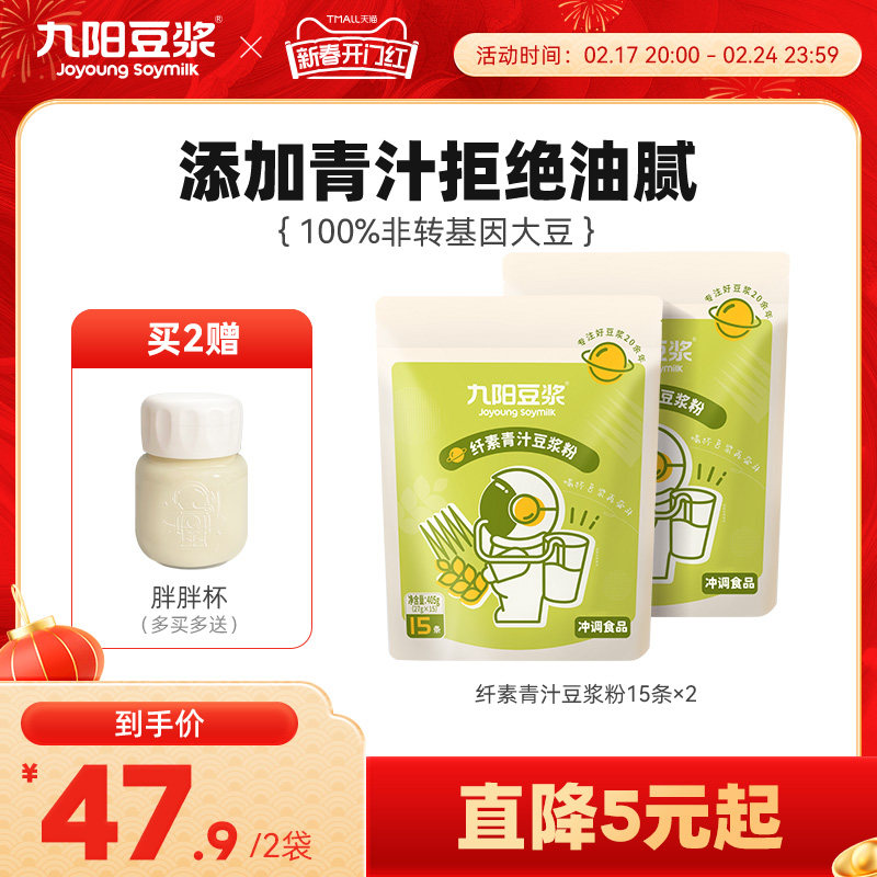 九阳豆浆大麦若叶青汁豆浆粉高蛋白高膳食纤维即食代餐粉纤素青汁