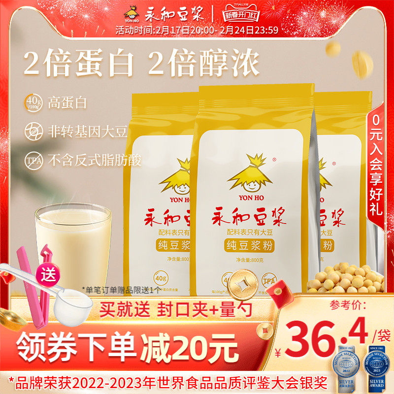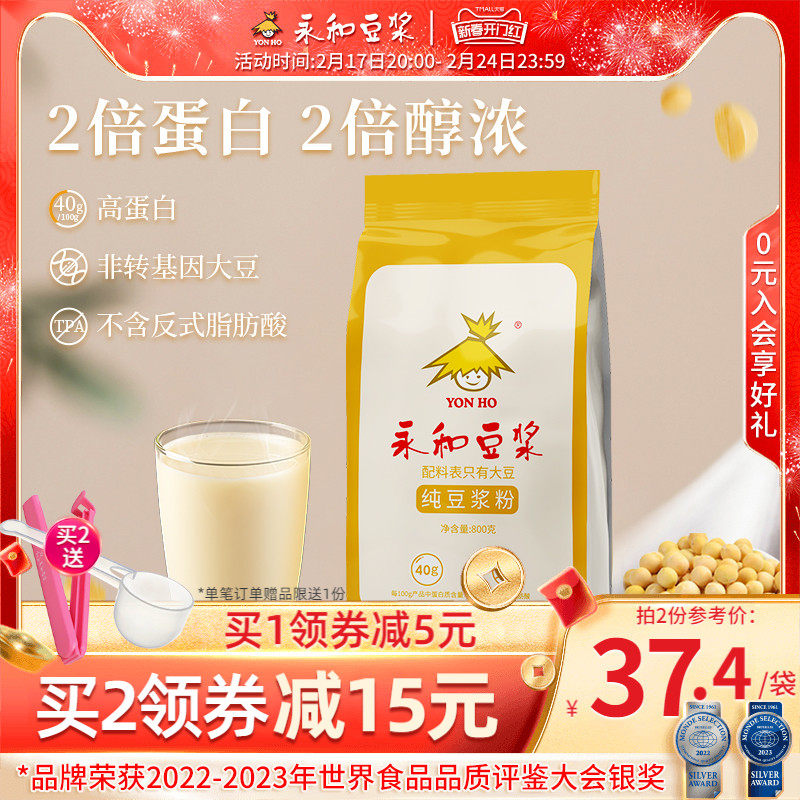 永和豆浆纯豆浆粉800g袋装不甜原味营养早餐速溶冲饮豆奶粉无糖精