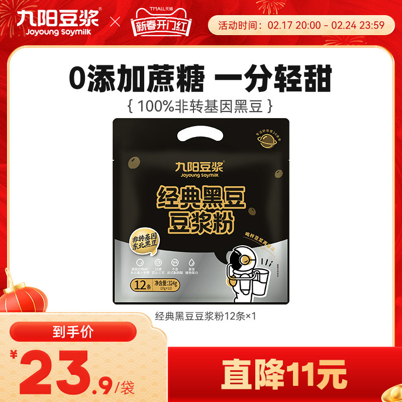 九阳豆浆黑豆豆浆粉12条低甜原味无添加蔗糖独立包装速溶早餐豆浆