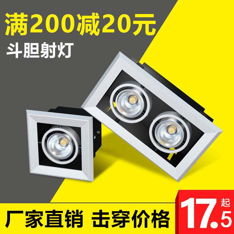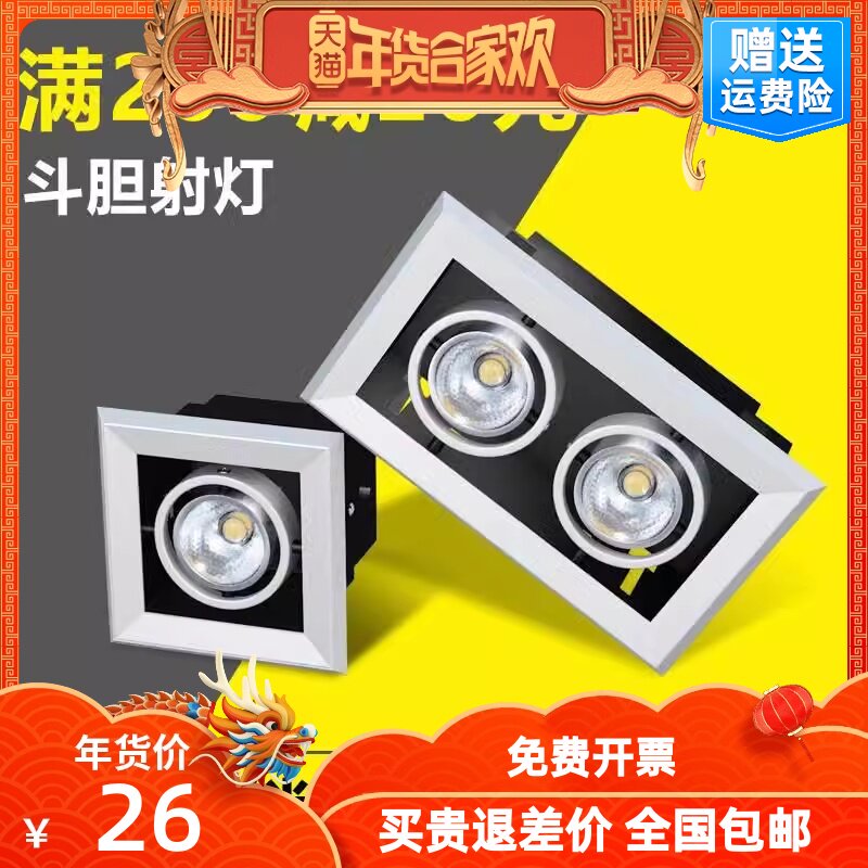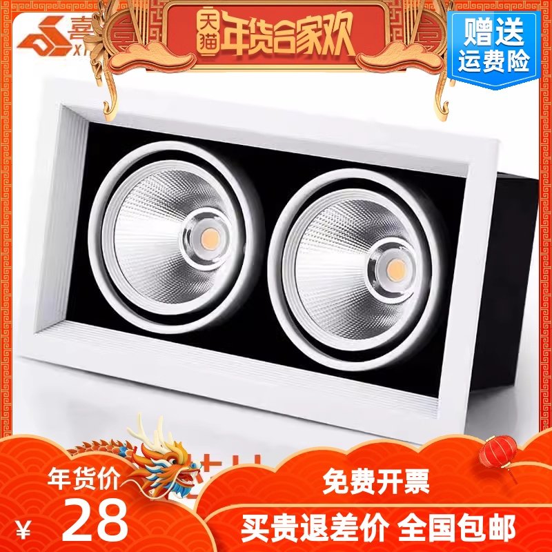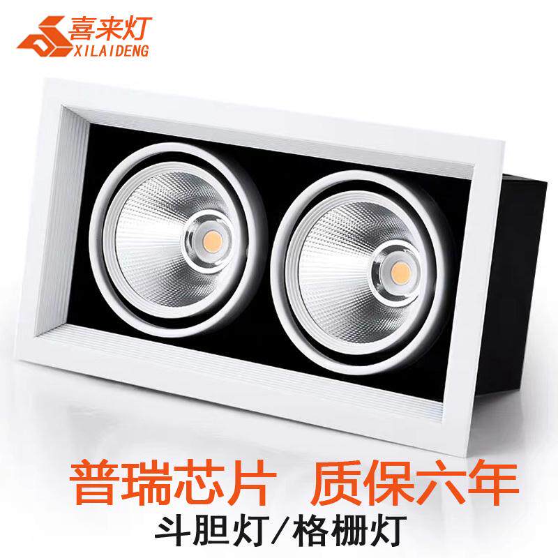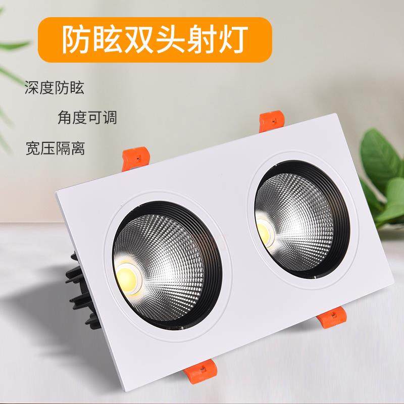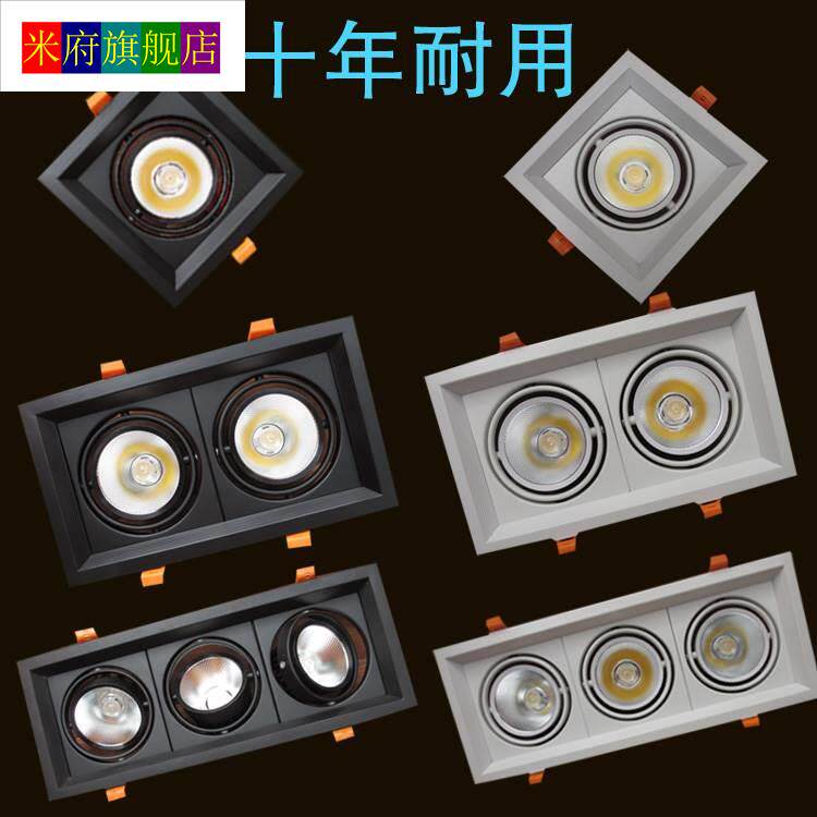led射灯双头斗胆灯嵌入式单头三头吊顶格栅灯店铺cob豆胆方形筒|
