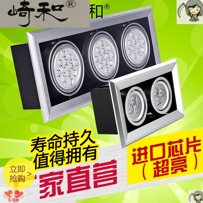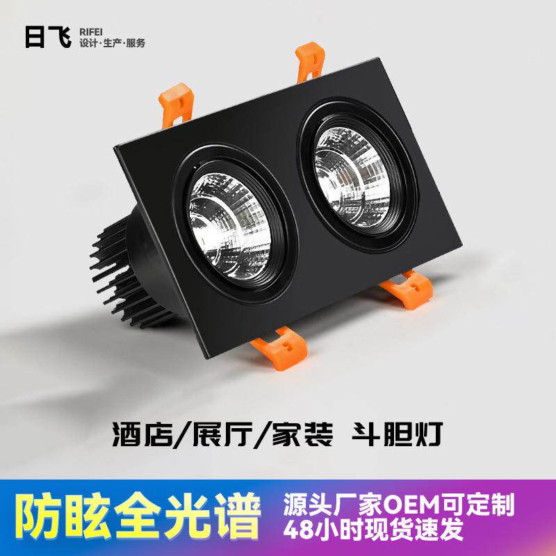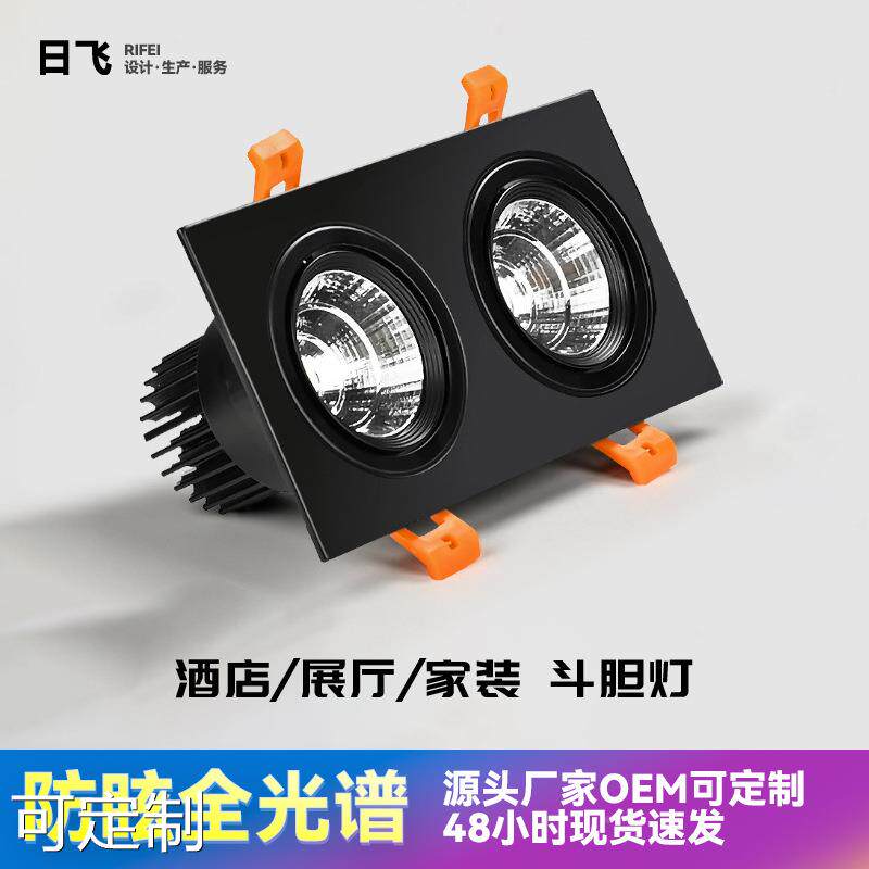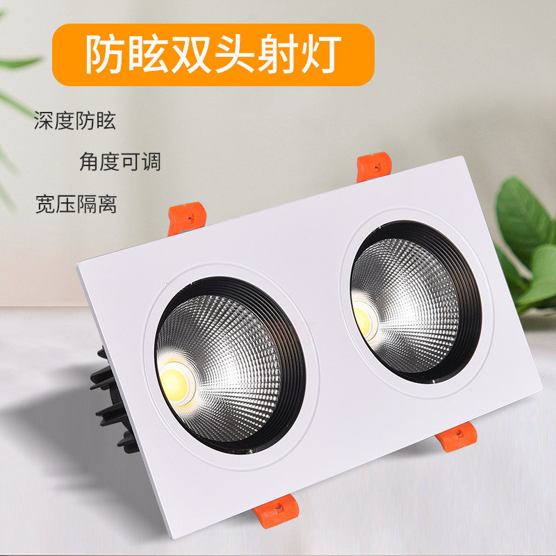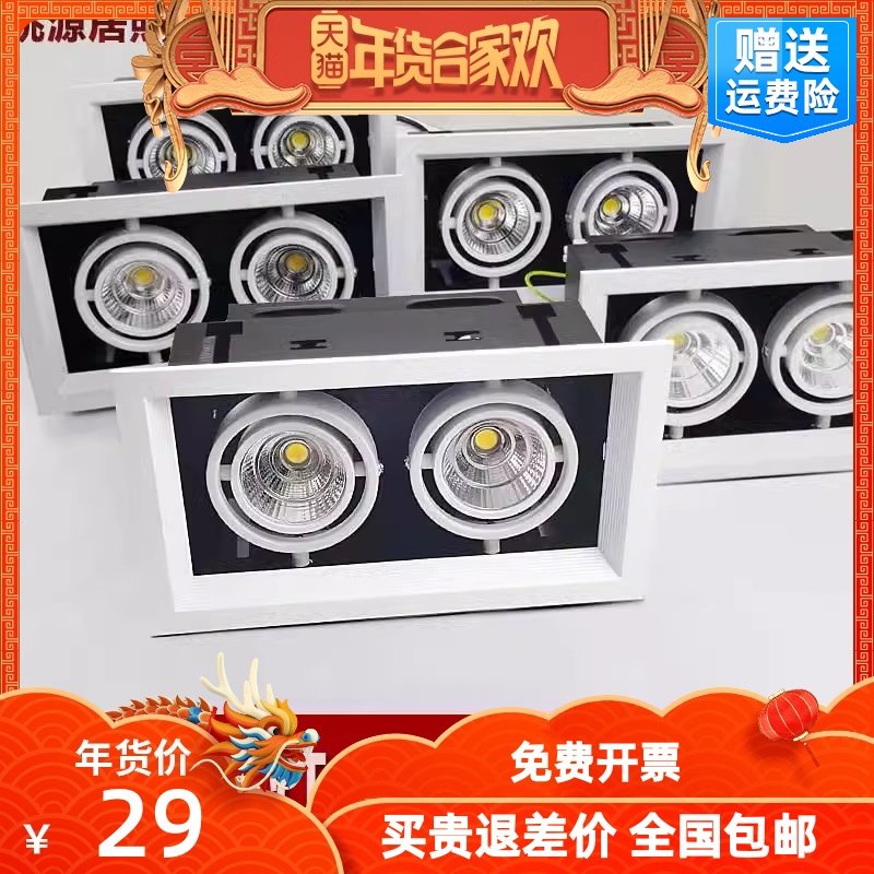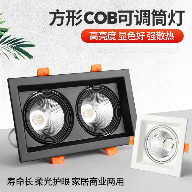 led射灯双头斗胆灯嵌入式单头三头吊顶格栅灯店铺cob豆胆方形筒|